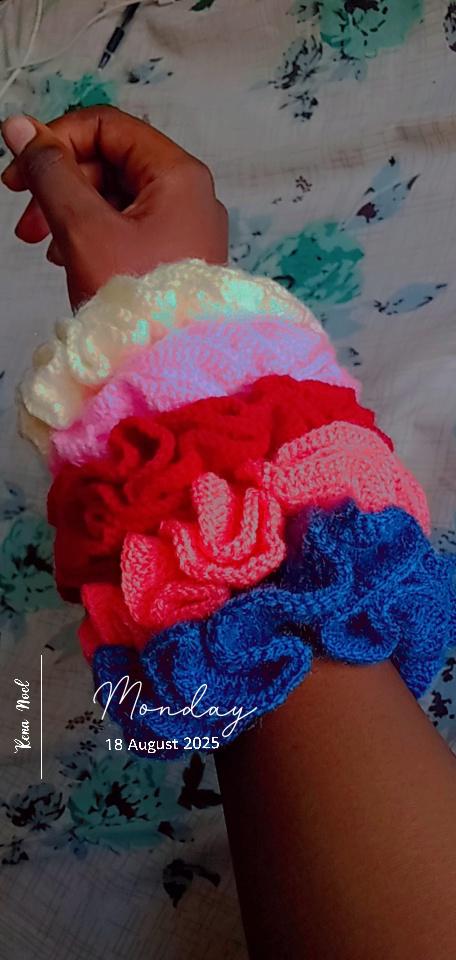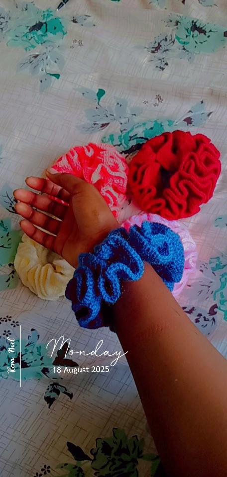 Handmade crochet scrunchie – soft, stretchy, and gentle on your hair. Available in vibrant colors to match every mood and outfit! 🎀