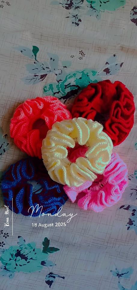 Handmade crochet scrunchie β soft, stretchy, and gentle on your hair. Available in vibrant colors to match every mood and outfit! π
